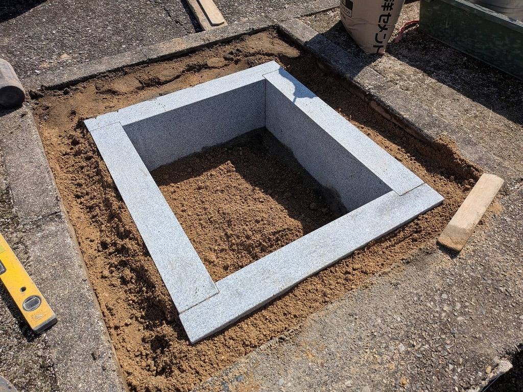 もちろん、土の中のカロート(納骨室)に至るまで、見えない個所であっても一切妥協しない丁寧な工事を行います。ご遺骨を納める大切な場所であるカロート(納骨室)は、弊社では耐久性に優れ、永く美しさを保つ「御影石」を標準で使用しております。 見えない部分だからこそ、一つ一つの作業に細心の注意を払い、頑丈で永く安心してお参りいただけるお墓をお作りしています。