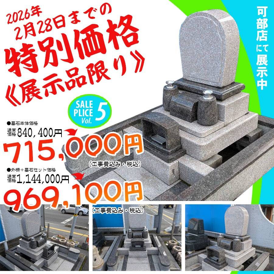 西山石材では現在、展示品入替のための特別価格にて墓石を販売しています!